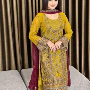 Dupatta: White gold shiffon With Embroidery & Sequence Work