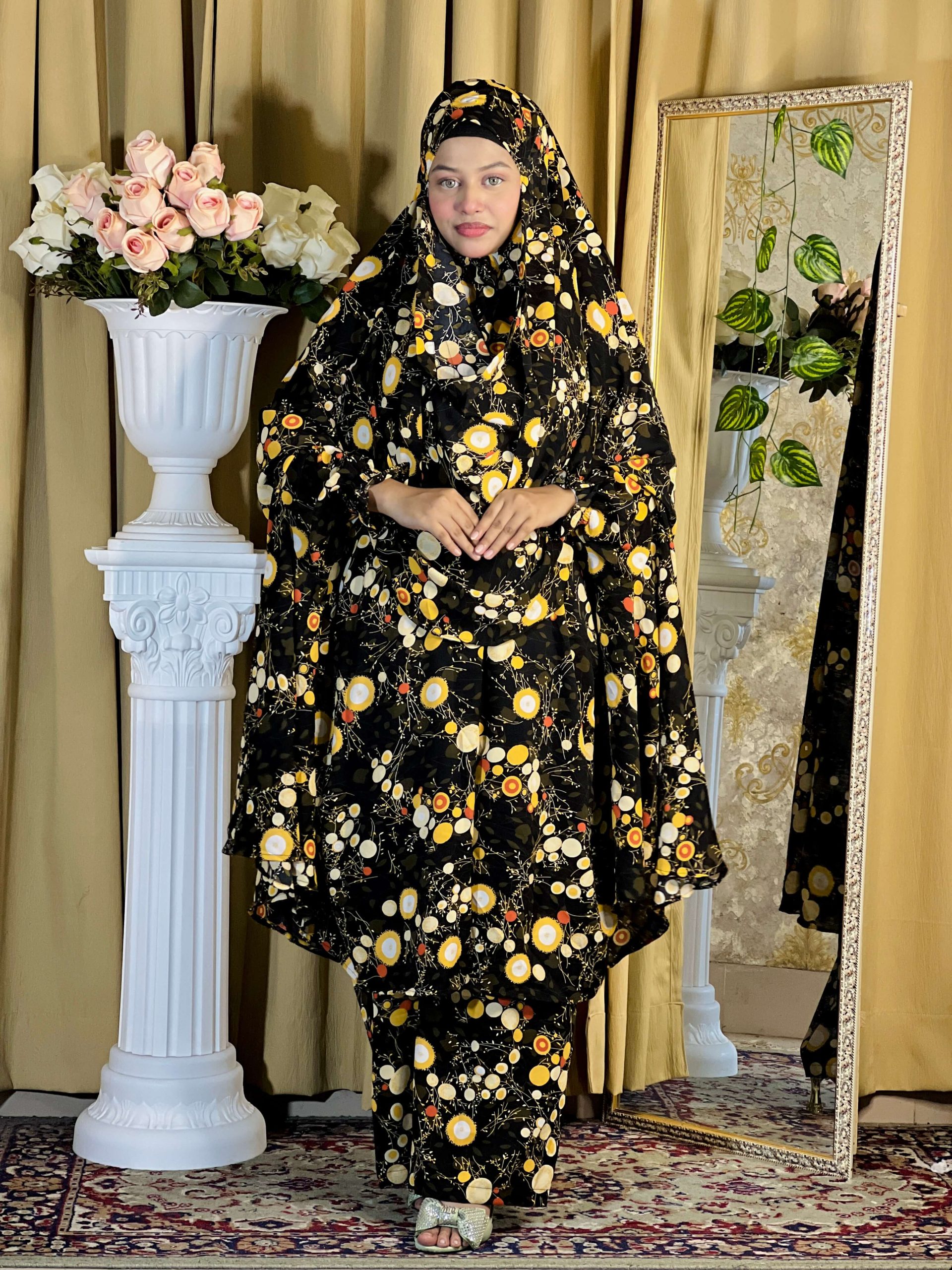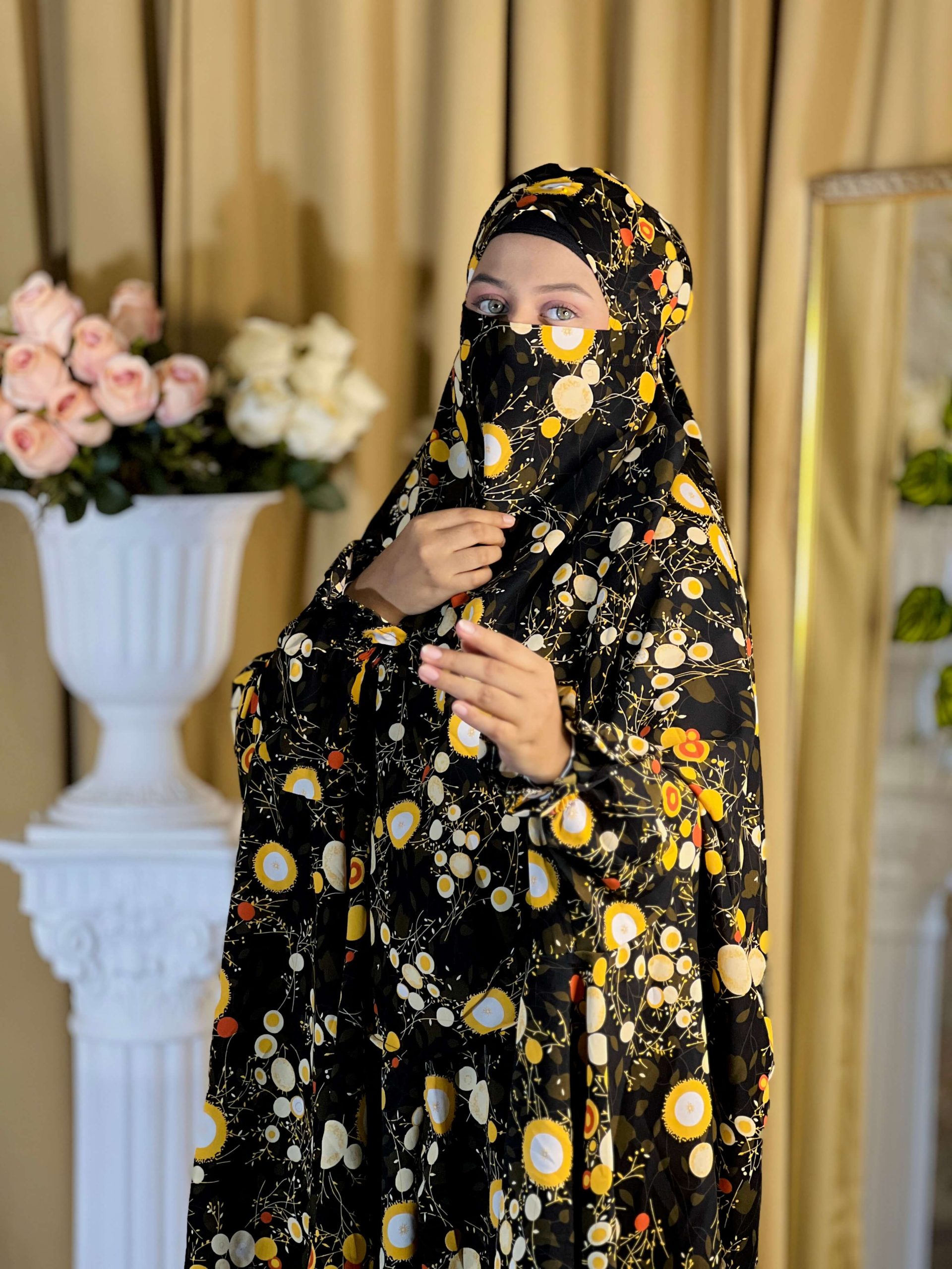 ফেব্রিক: চেরি কাপড় খিমার: সামনে লং ৫৪”, পিছনে লং ৫৮” নিকাব ৩০” প্লাজু লংঃ ৪০”