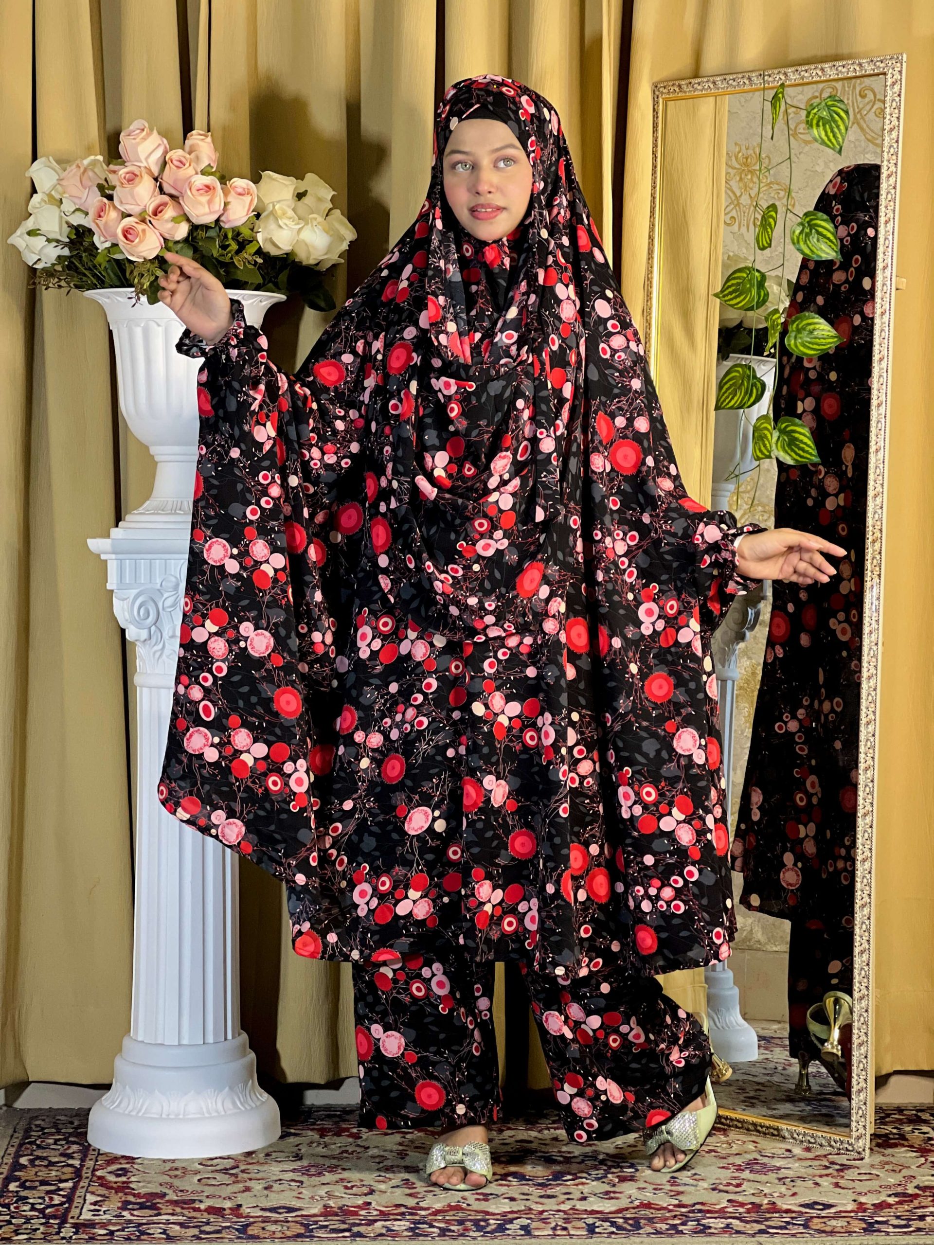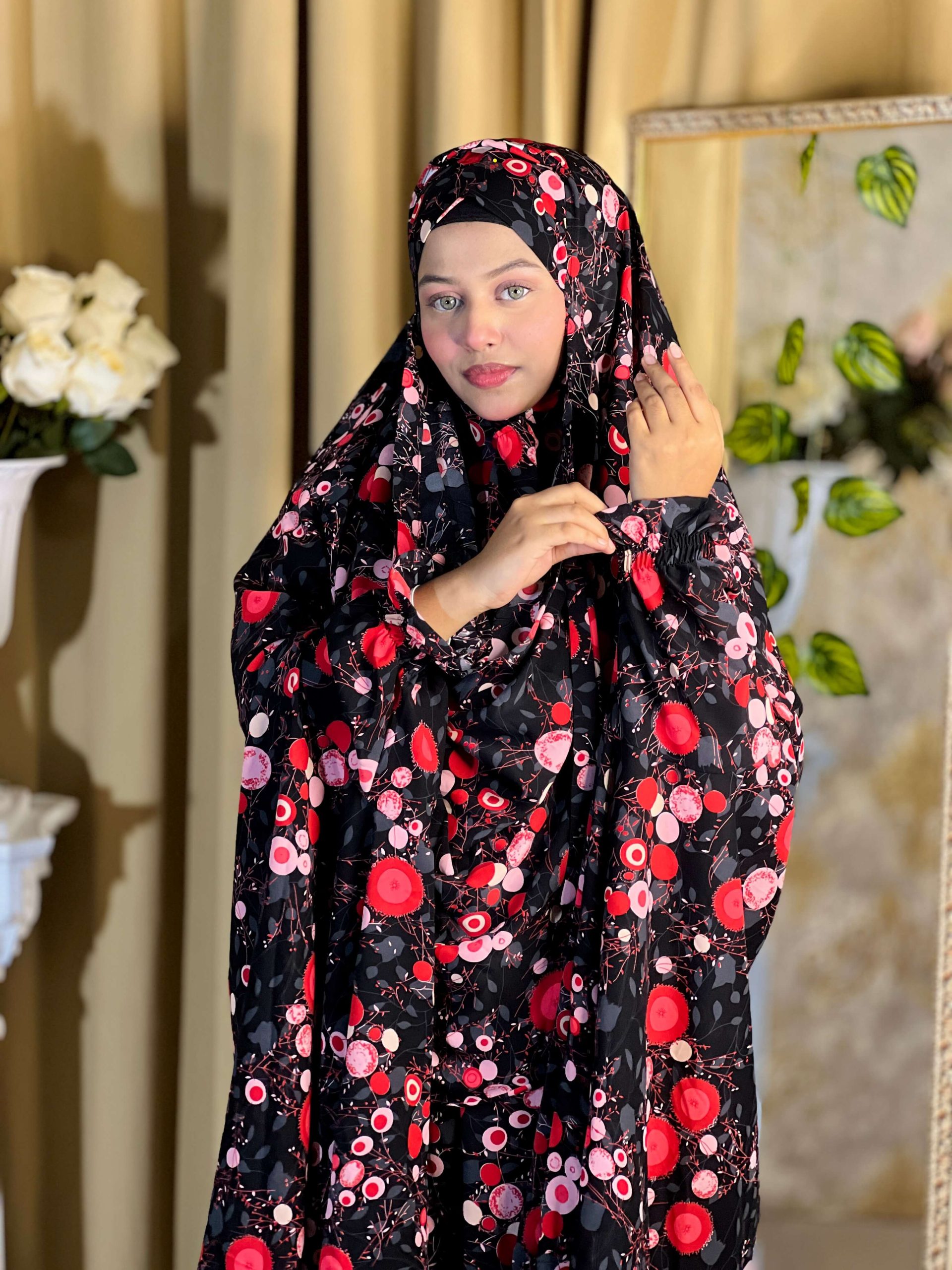 ফেব্রিক: চেরি কাপড় খিমার: সামনে লং ৫৪”, পিছনে লং ৫৮” নিকাব ৩০” প্লাজু লংঃ ৪০” কোমড়ে ইলাস্টিক দেয়া, তাই সাইজের কোন ঝামেলা নেই। ফ্রি জাইস। সবার জন্য উপযোগী।