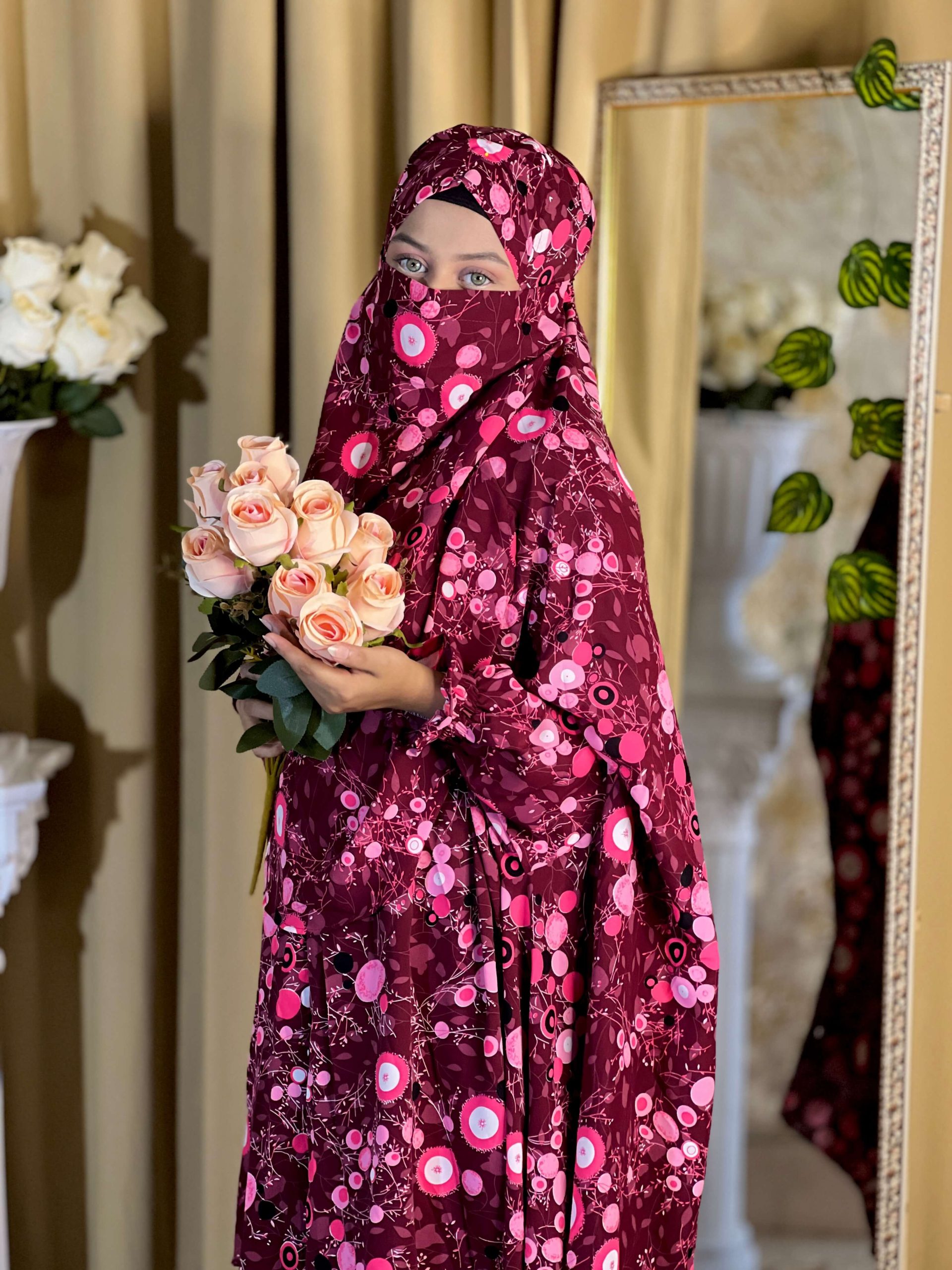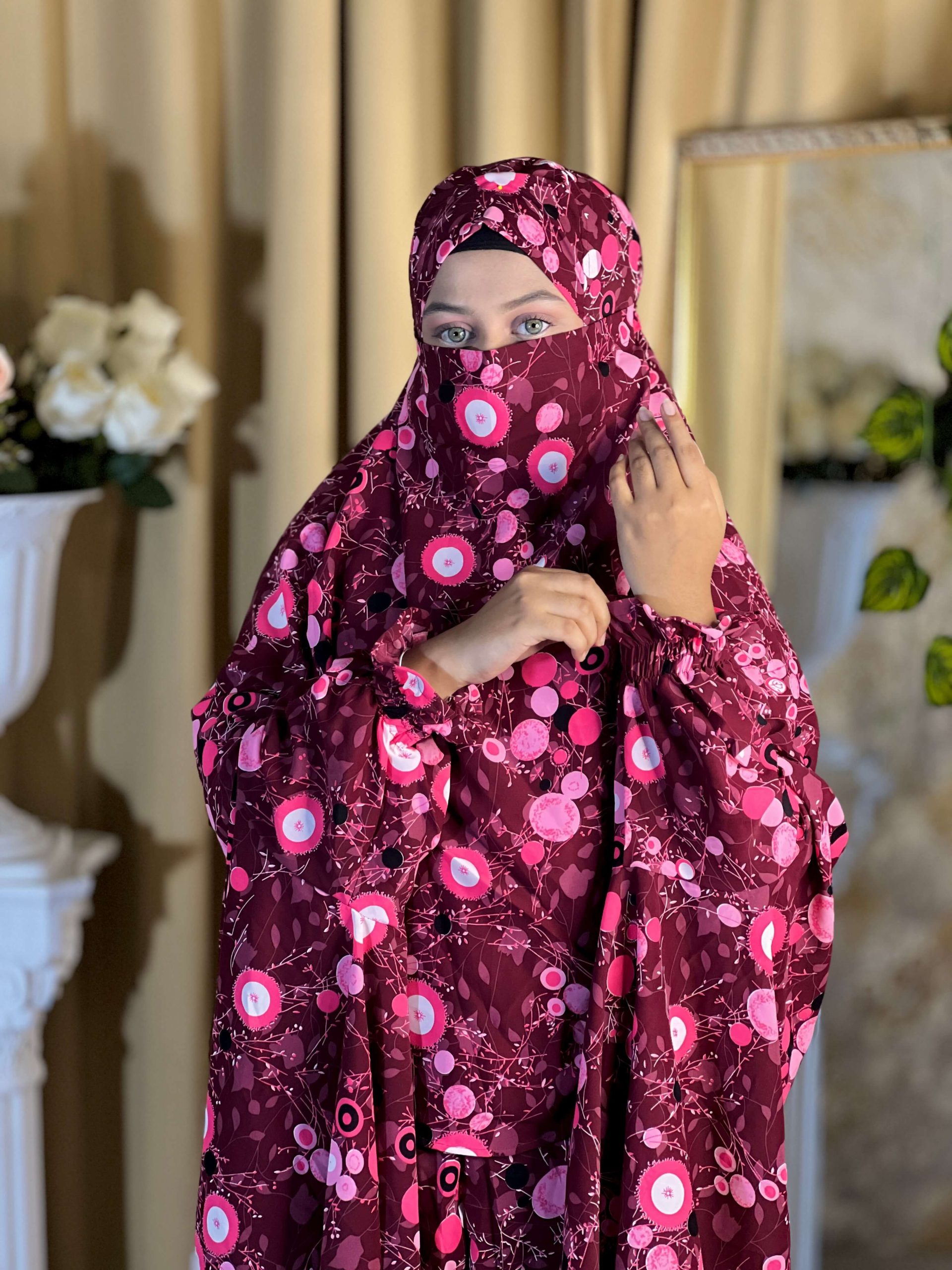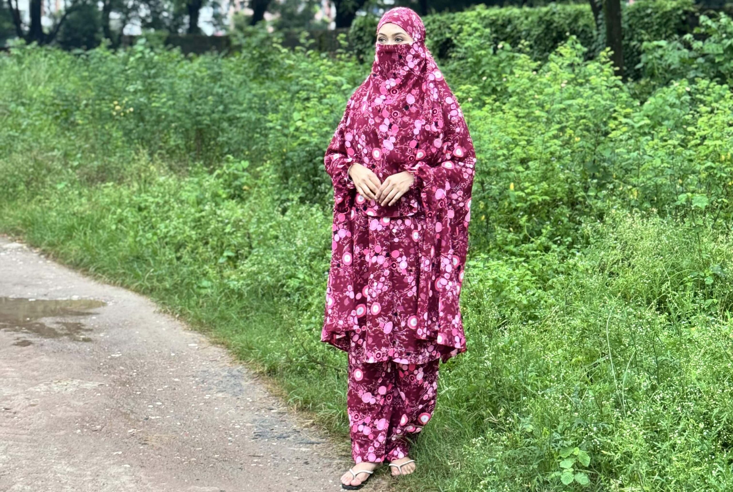 ফেব্রিক: চেরি কাপড় খিমার: সামনে লং ৫৪”, পিছনে লং ৫৮” নিকাব ৩০” প্লাজু লংঃ ৪০” কোমড়ে ইলাস্টিক দেয়া, তাই সাইজের কোন ঝামেলা নেই। ফ্রি জাইস। সবার জন্য উপযোগী।