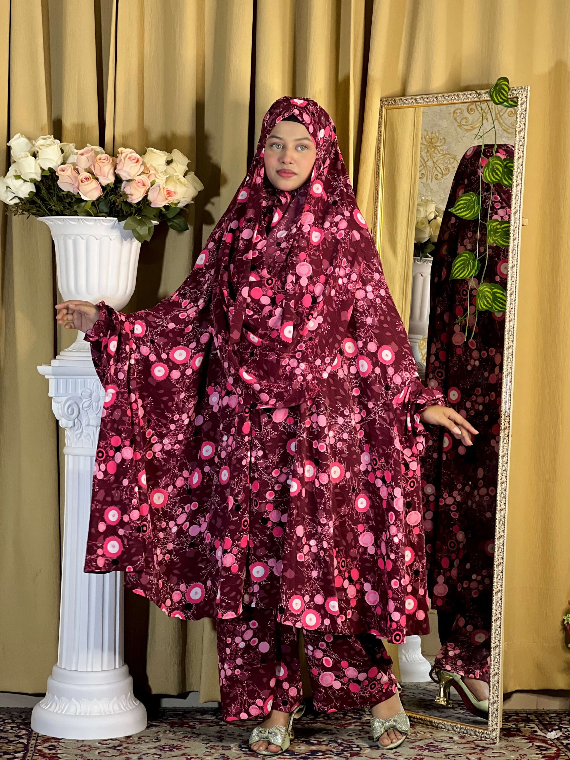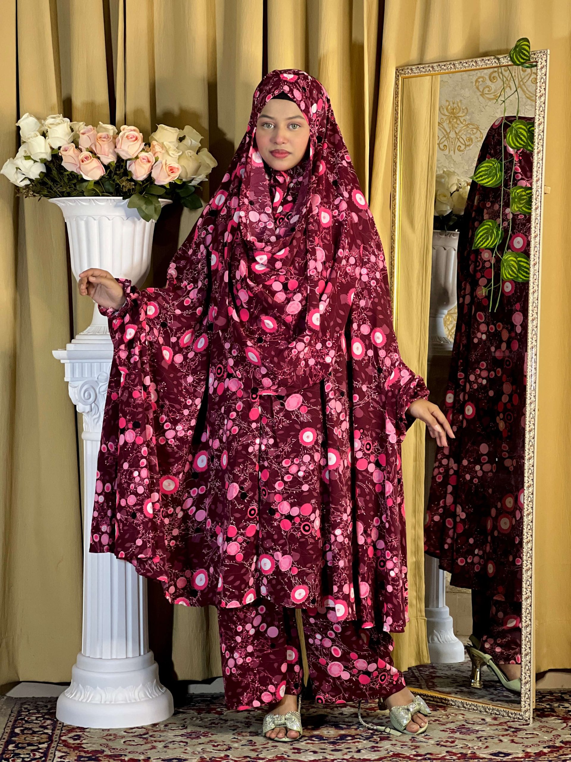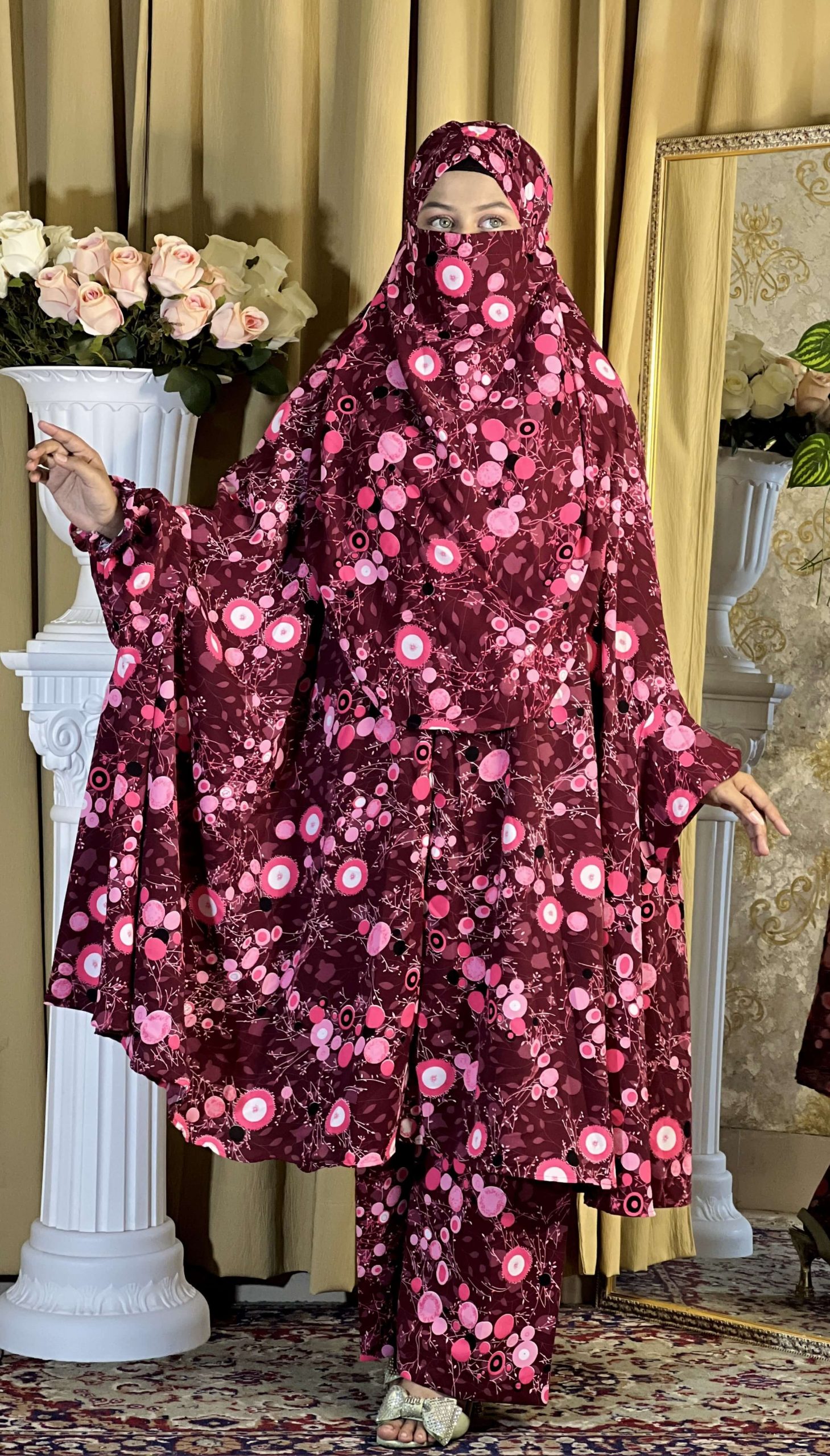 ফেব্রিক: চেরি কাপড় খিমার: সামনে লং ৫৪”, পিছনে লং ৫৮” নিকাব ৩০” প্লাজু লংঃ ৪০” কোমড়ে ইলাস্টিক দেয়া, তাই সাইজের কোন ঝামেলা নেই। ফ্রি জাইস। সবার জন্য উপযোগী।