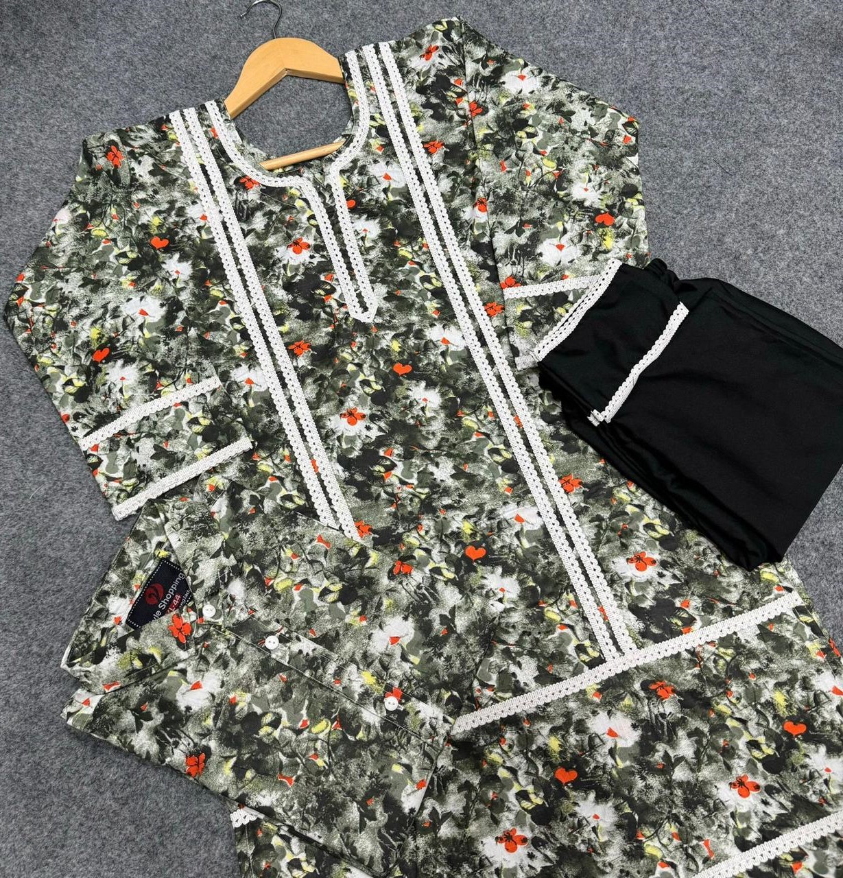 2️⃣ কামিজ- বডি ফ্রী সাইজ, লং-৫০ ইঞ্চি, গের-১০০ ইঞ্চি